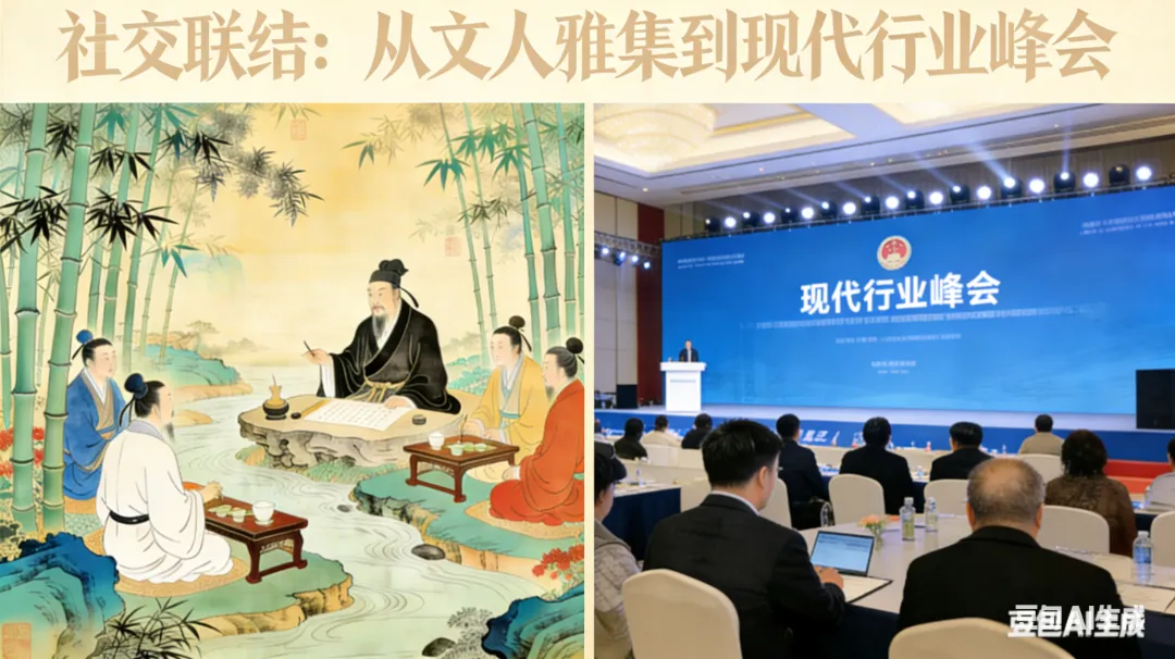 现代行业峰会、专业论坛,虽更趋商业化、专业化,核心依旧是搭建圈层、联结人脉、凝聚共识。古人重“雅”的精神境界,今人重“专”的行业高度,内核都是人与人的深度相遇。