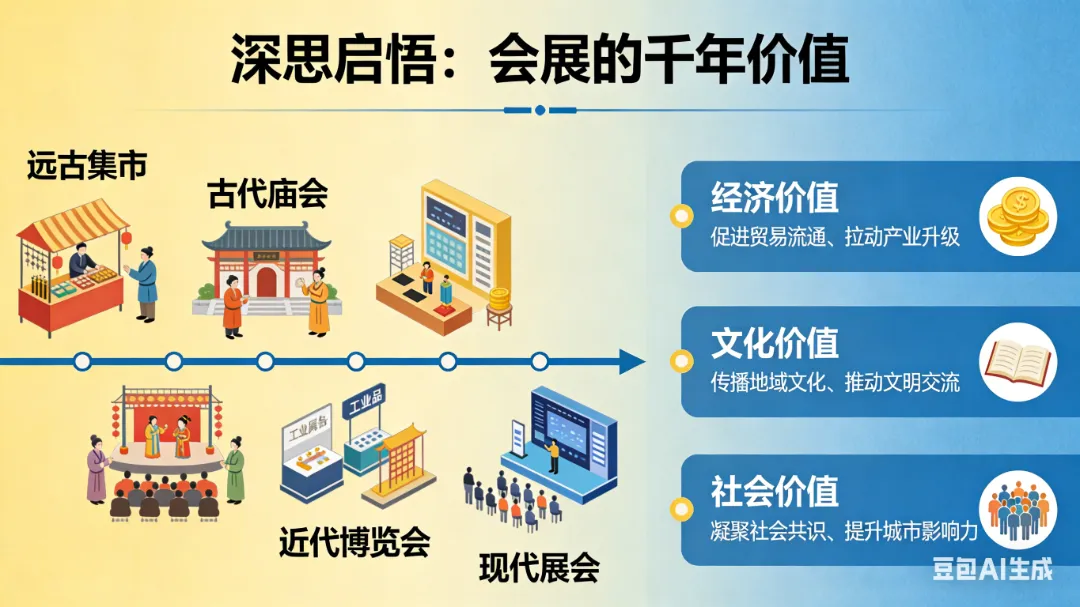 从远古集市到现代展会,会展跨越千年依旧长盛不衰,甚至成为城市发展、产业升级的重要抓手,绝非偶然。会展风行的背后,是综合效应的深层考量,它早已超越单一的交易功能,成为兼具经济、文化、社会价值的多元载体。
