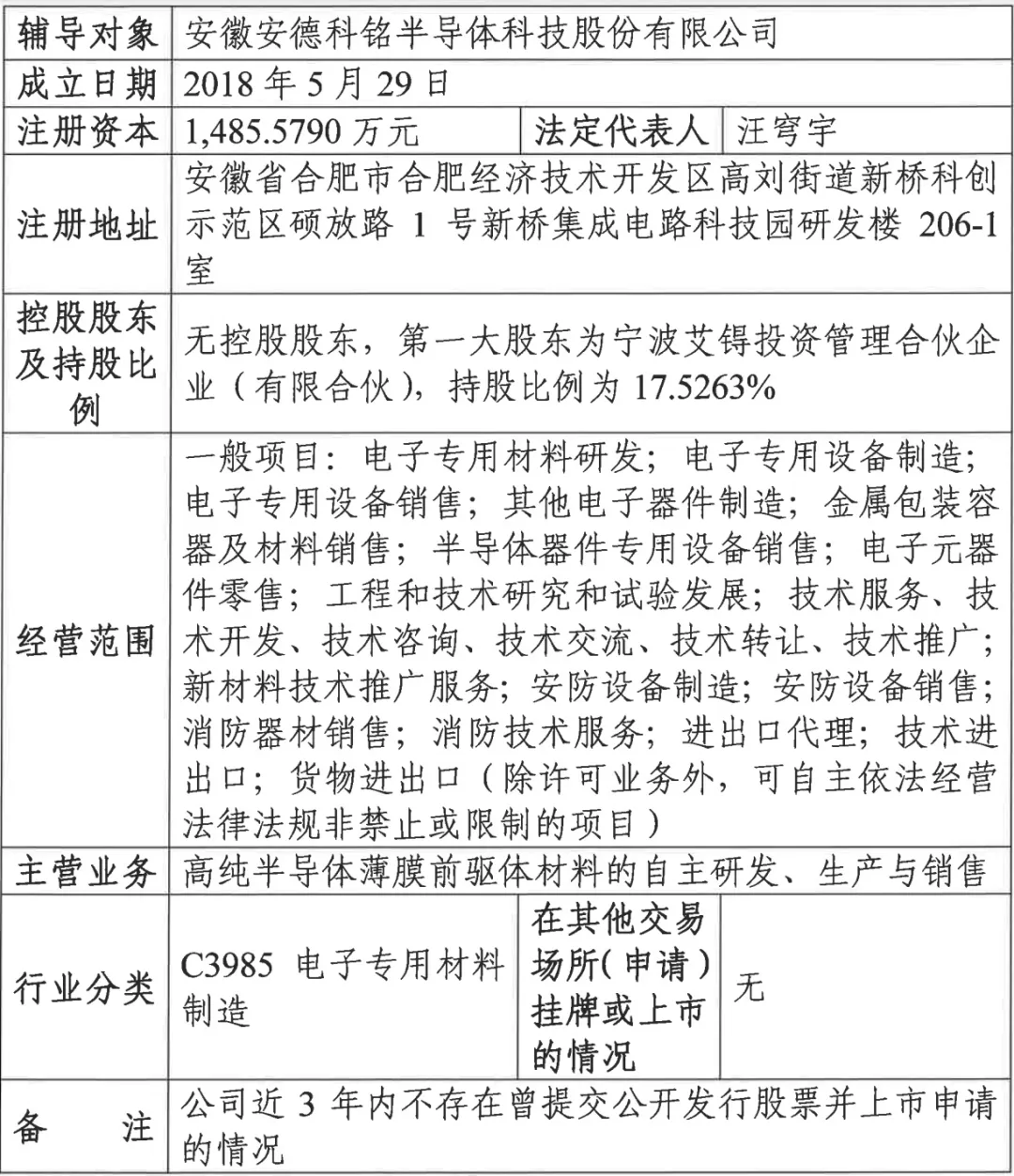 根据相关研究报告及上市公司的公告,全球半导体CVD和ALD用前驱体市场仍然被海外厂商占据主要市场份额,国产替代空间较大,有一定的技术壁垒。从业务属性上看,公司上科创板有一定的机会。