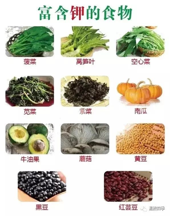 钾具有抗动脉硬化、降血压、保护心脏的作用,钾丰富的食物有蘑菇、豆类、菠菜、紫菜、莲子、香蕉、橘子等。