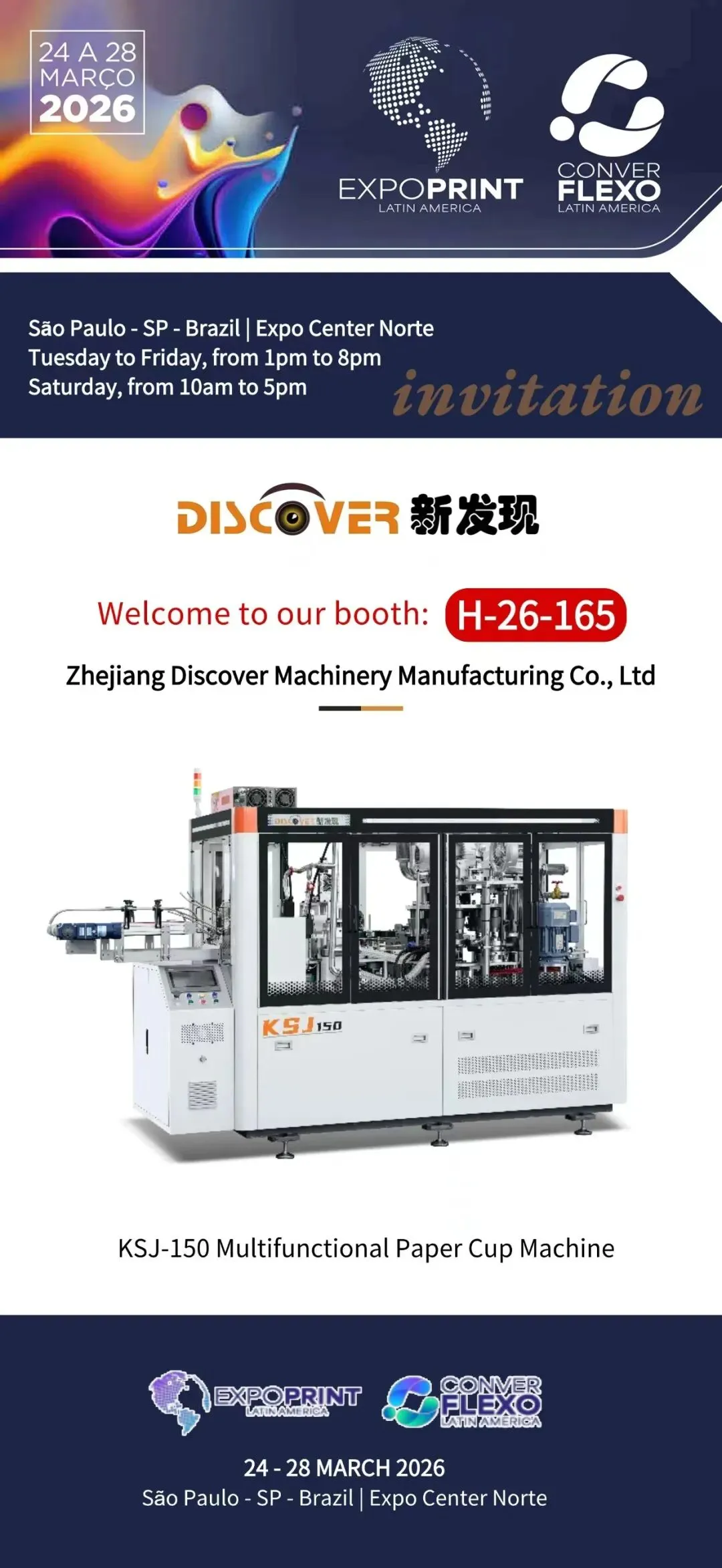 展会期间,我司将携优势产品KSJ-150多功能纸杯机重磅亮相,聚焦纸容器包装行业高效生产需求,为拉美市场提供定制化整体解决方案,助力客户提质增效、赋能升级。