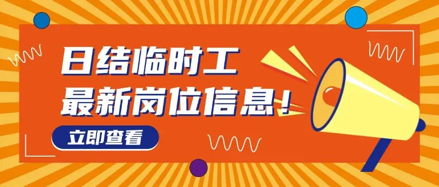 全国每天更新10000+日结临时工岗位信息,公众号每天发布的岗位有限,查看同城在招的兼职岗位,可进入小程序,登录后可查看全部岗位,新岗位实时更新发布,想干的活,需要拼手速抢!