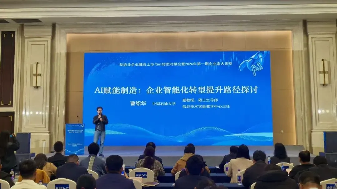 在主题分享环节,中信建投证券投行专家于雷围绕“多层次资本市场助力制造业企业上市融资”进行深度解读,为企业规划上市路径提供专业指导。深交所科技成果与知识产权交易中心市场发展部主管付灵菲就“资本市场赋能产学研投融合发展”作分享,助力企业链接科技与资本市场。中国石油大学计算机科学与技术学院曹绍华教授以“AI赋能制造:企业智能化转型提升路径探讨”为题,从技术应用、转型路径等方面为企业提供可落地的实践方案。