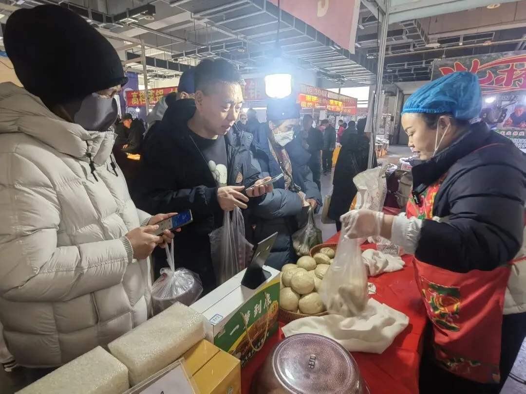 拜泉县展位前,市民扫码下单、添加微信以便复购,企业负责人洽谈合作,寻求长期供应。市住建局的驻村队员陈鹏甚至在展位现场开起了直播,与网友热情互动,拓展销路。