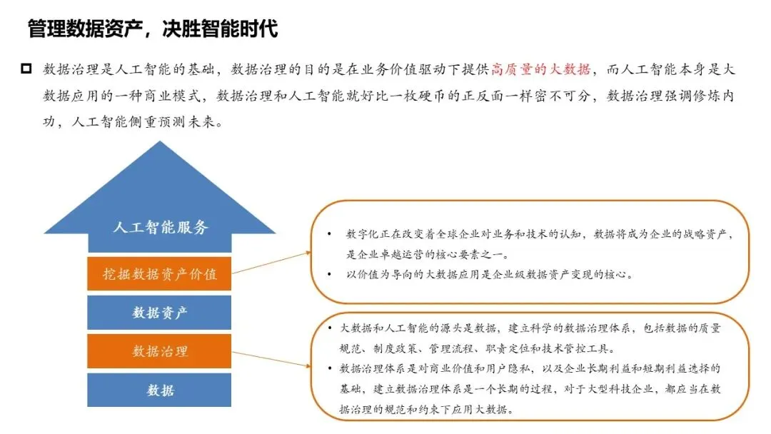 数据治理是人工智能的基础,目的是在业务价值驱动下提供高质量的大数据。