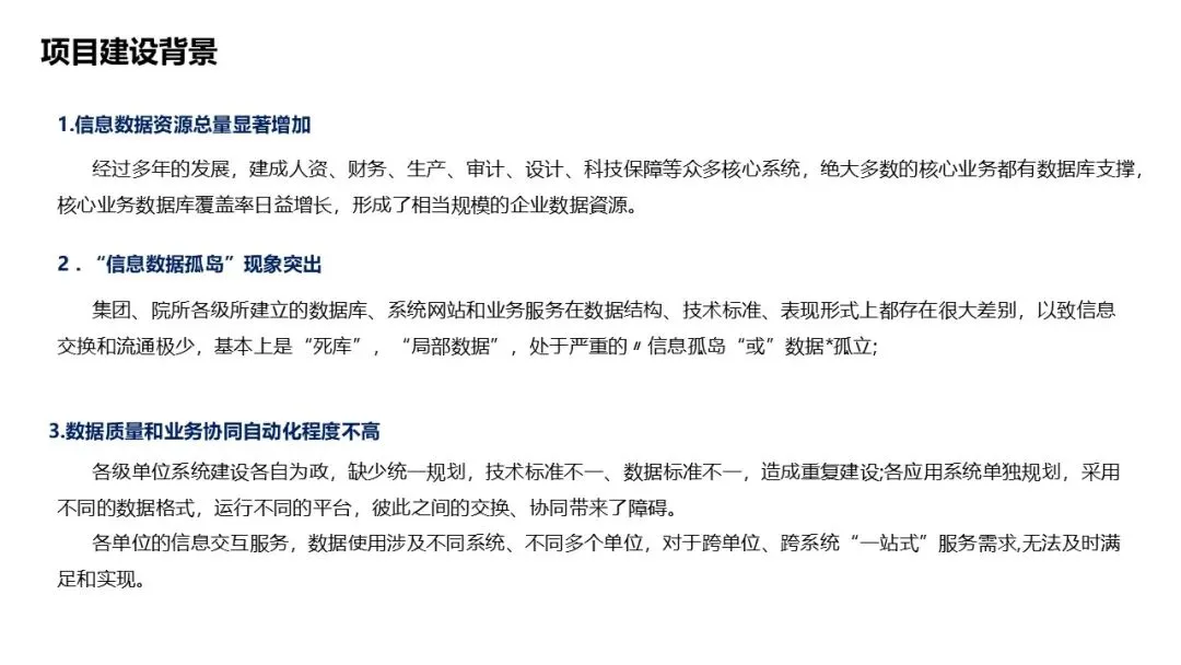 背景:数据资源显著增加,但“信息孤岛”严重,数据质量不高;