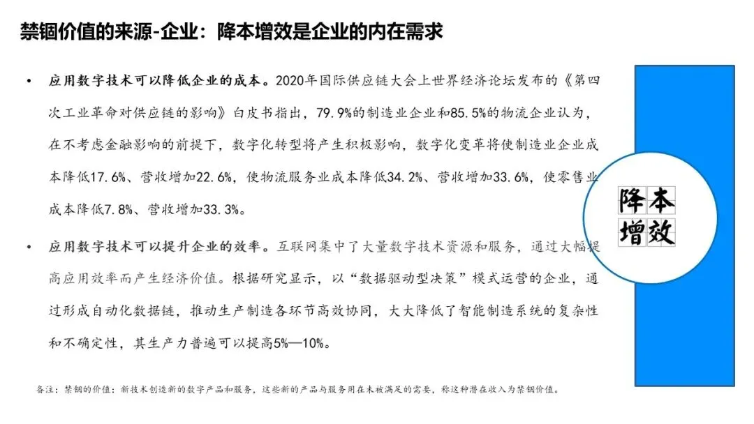 释放企业、行业、消费者、社会层面的禁锢价值;