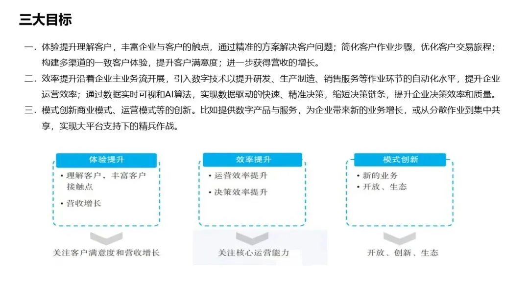 三大目标:体验提升、效率提升、模式创新;