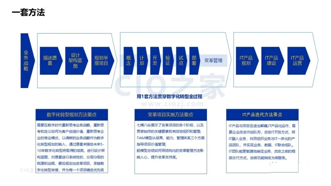 方法是成功保障:借鉴TOGAF、服务化V模型、变革管理框架等成熟方法论,确保转型有序推进。