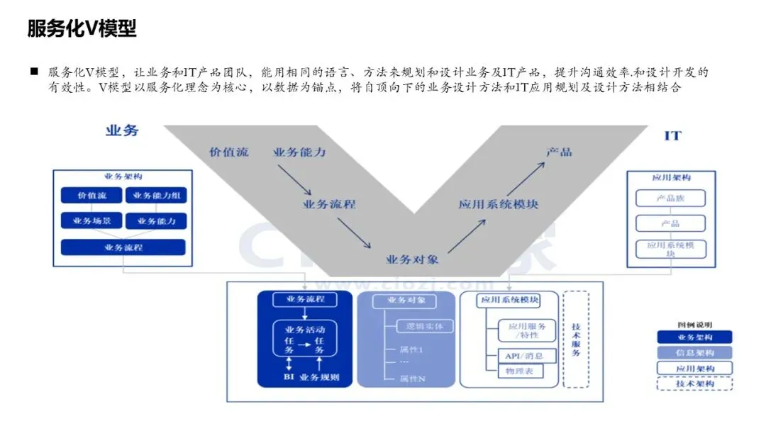 服务化V模型:统一业务与IT的语言和方法,提升沟通与设计效率。