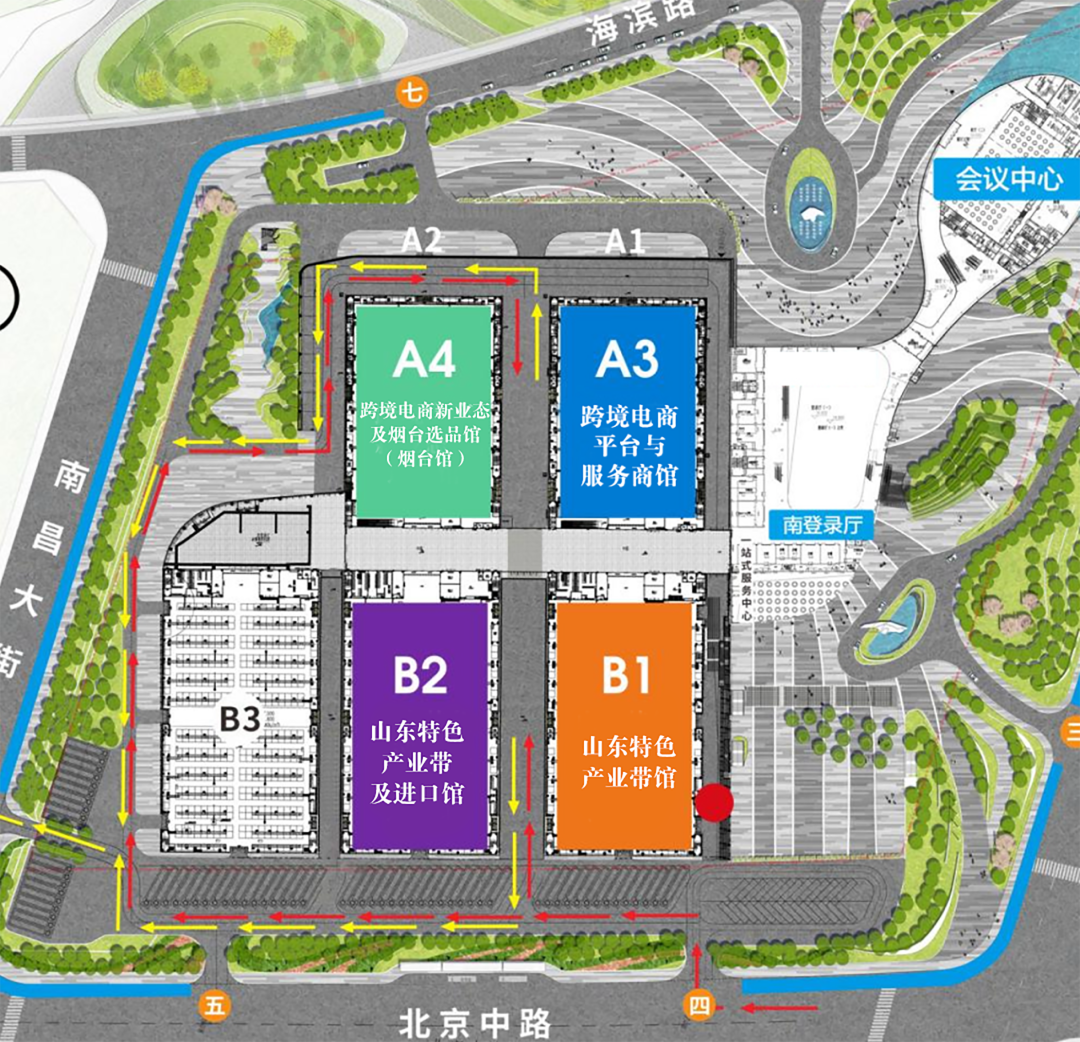 观众由烟台八角湾国际会展中心南登录大厅扫码安检入场。
