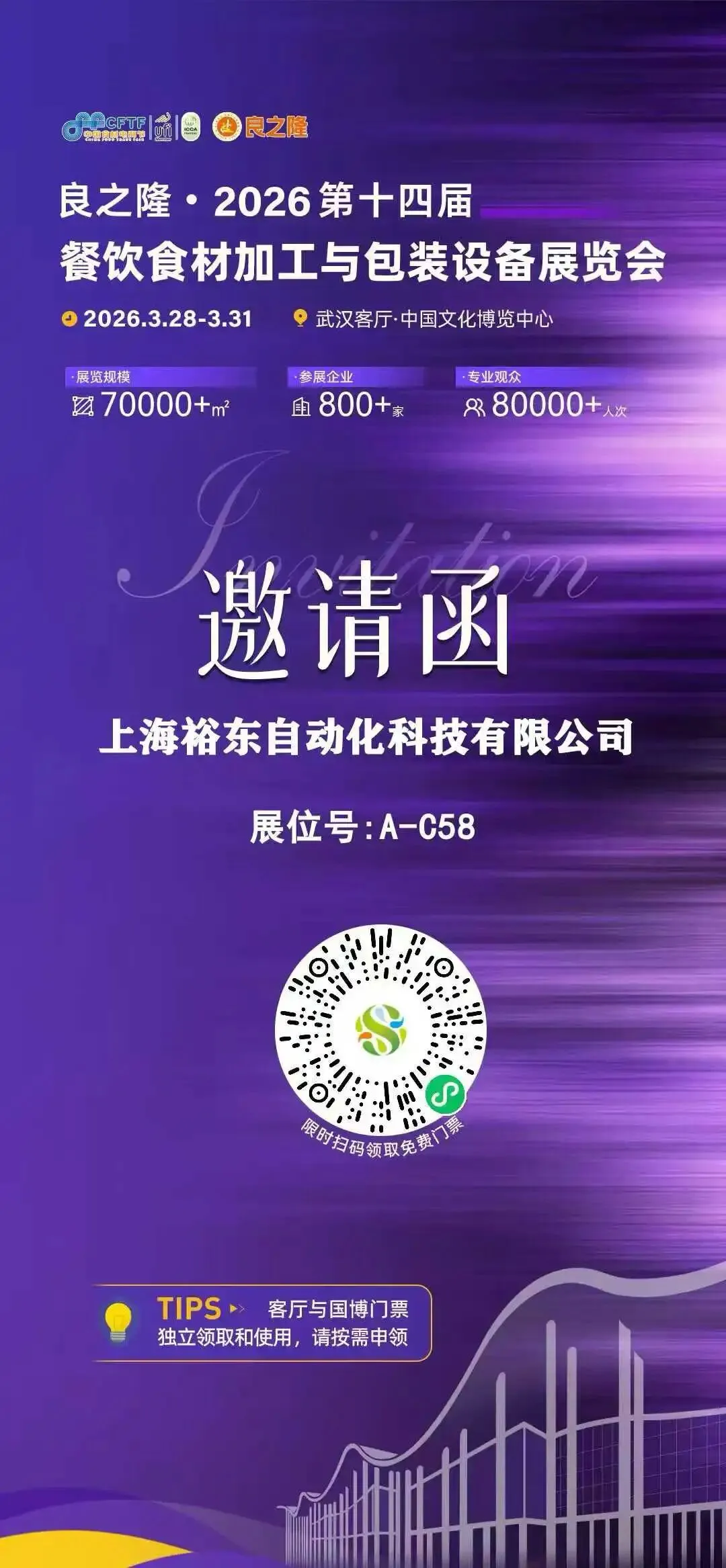 35万平方米的展览版图、6000+行业翘楚、45万专业采购精英,裕东自动化在武汉客厅・中国文化博览中心A-C58展位号,邀您共赴盛宴。