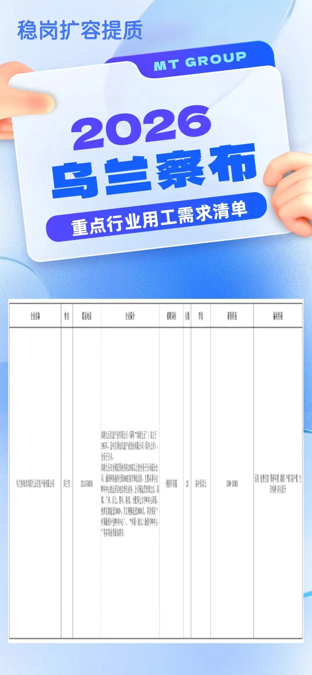 稳岗扩容提质|2026年乌兰察布市重点行业企业用工需求清单(第52期)