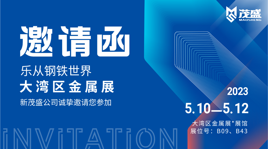 您好!非常感谢您长期以来对我司的大力支持!新茂盛公司将于2023年5月10日—12日在乐从钢铁世界开展,诚挚邀请您参加。“大湾区金属产业博览会”我们在乐从钢铁世界等你!