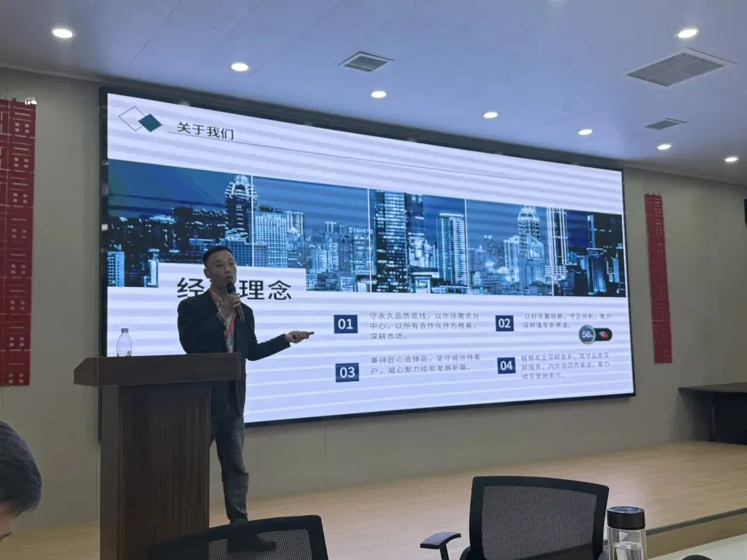 随后,大区经理李总围绕市场动销策略、区域市场规划、终端运营支持等内容做专题分享,结合当前行业趋势与区域特点,给出务实可行的市场打法,助力经销商精准拓客、高效运营、稳步增收。豫中区域经理郑总聚焦新品核心亮点,从设计理念、技术工艺、性能优势、适配场景等维度进行详细讲解,让在场嘉宾全面领略永冠新品的硬核实力与市场竞争力。
