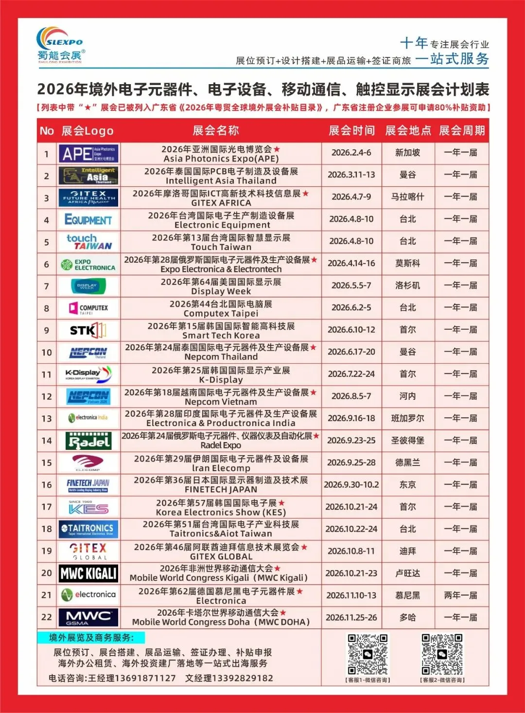 湖北省人民政府推出助力中小企业稳健发展的系列举措,聚焦破解企业市场开拓瓶颈,以 “千企百展出海拓市场” 专项行动为载体,积极组织省内企业参与境外各类展会,推动鄂企深度融入全球产业链、稳步扩大外贸出口。2026 年 2 月,当地已发布两批境外重点展会目录,合计涵盖 238 场展会活动。
