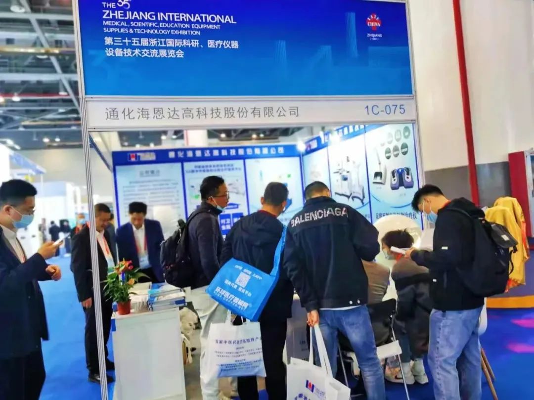 在展会中,海恩达携舌脉象、经穴、体质辨识采集分析仪,五音臧象(五脏相音)分析仪系统,足底反射穴位刺激治疗仪等产品参展,展位前人群熙攘、络绎不绝。