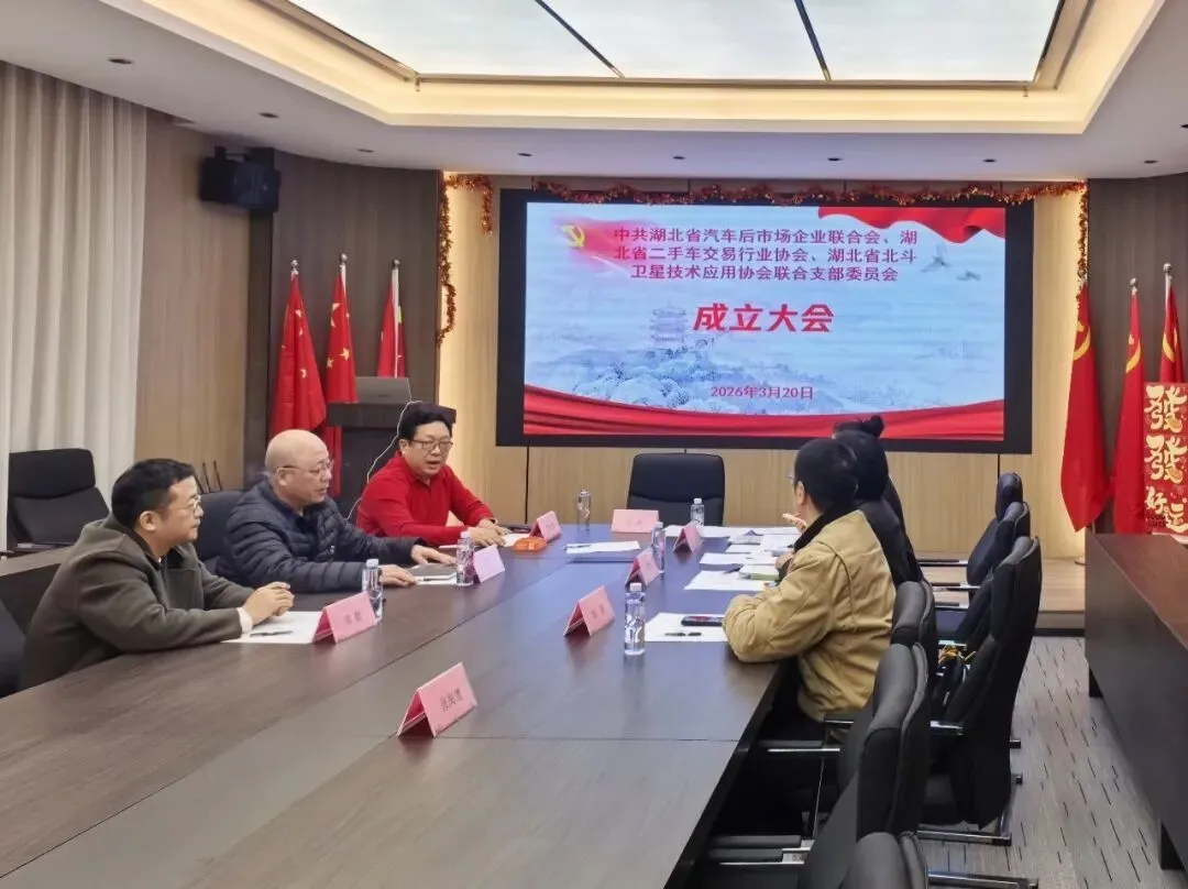 2026年3月20日下午,中共湖北省汽车后市场企业联合会、湖北省二手车交易行业协会和湖北省北斗卫星技术应用协会联合支部委员会成立大会在湖北省汽车后市场企业联合会二楼会议室隆重举行。 三家组成单位的全体党员齐聚一堂,共同见证这一庄严时刻。