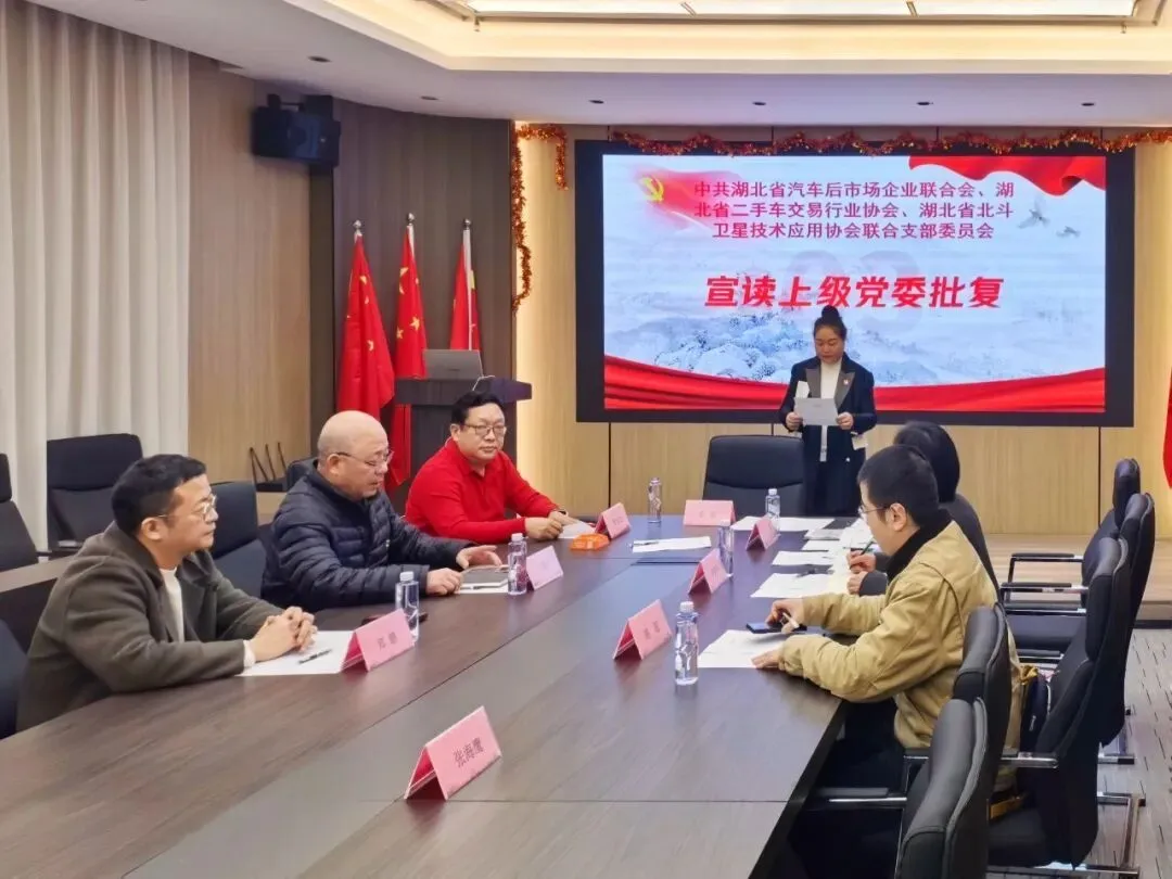 会议首先宣读了上级党委《关于同意成立中共湖北省汽车后市场企业联合会、湖北省二手车交易行业协会和湖北省北斗卫星技术应用协会联合支部委员会的批复》(鄂全协会党发〔2026〕24号)。批复的宣读标志着联合党支部的正式成立,为三家协会今后的党建工作指明了方向。随后,全体与会党员共同学习了《中国共产党章程》中关于党支部成立和选举工作的相关规定,进一步增强了党员的组织观念和纪律意识。