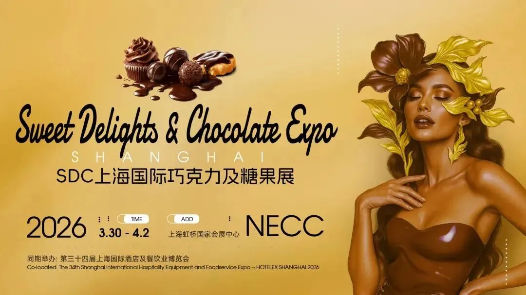 本届SDC上海国际巧克力及糖果展,将与第三十四届HOTELEX上海国际酒店及餐饮业博览会深度联动,于2026年3月30日至4月2日在上海虹桥国家会展中心(NECC)同期举办。