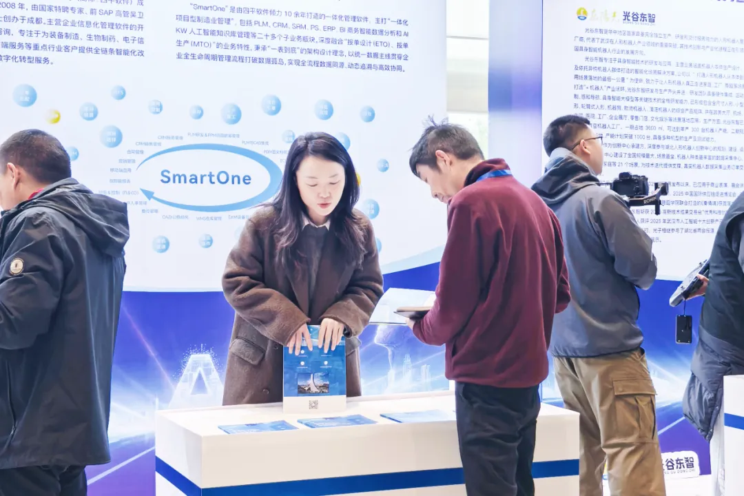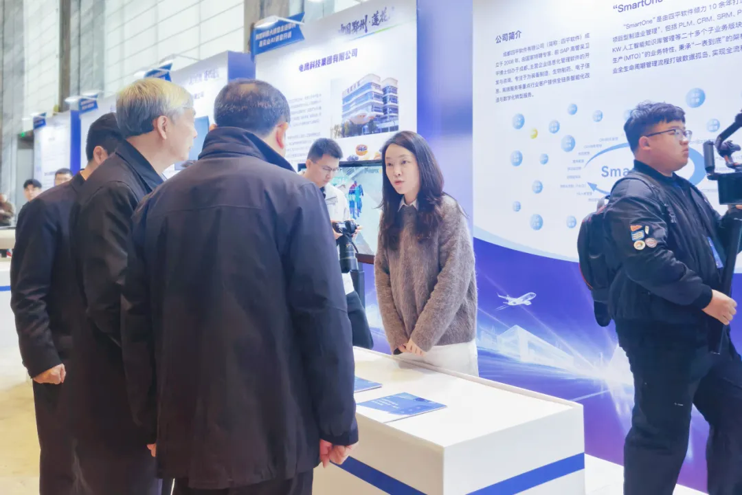 AI成果展上,四平软件副总经理张凤向前来展台的参观者介绍了企业管理软件业务应用场景,探讨了AI赋能企业数字化转型的融合实践。