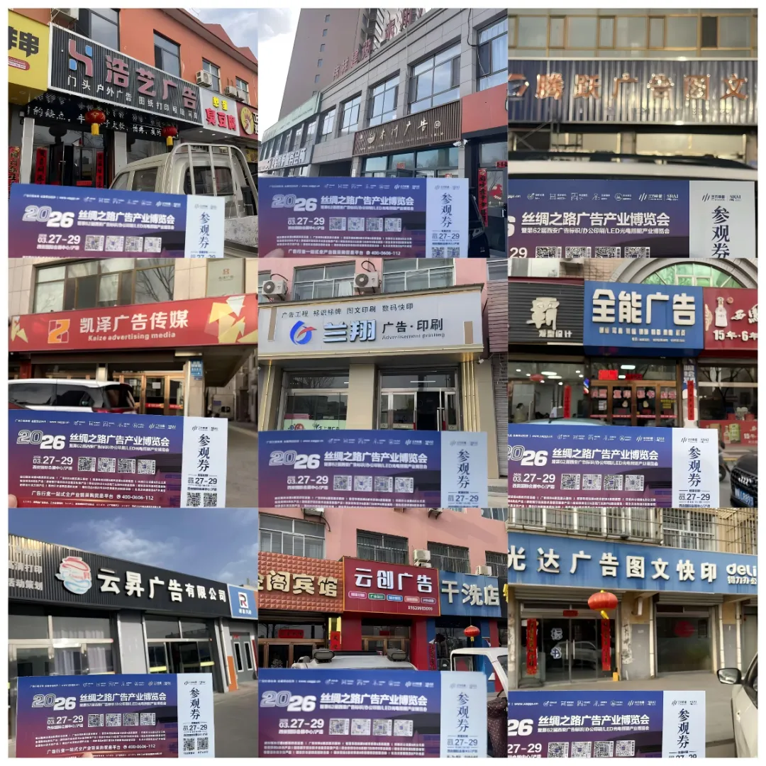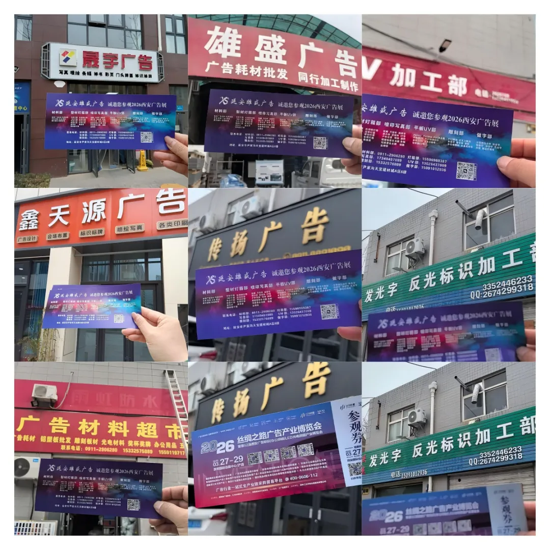 携手地县伙伴,共启行业新篇!再次感谢安塞县金明广告印务有限公司、延安雄盛广告、潼关县展图广告装饰、神木市西楚广告文化传媒有限公司、旬邑县城关通泰广告工作室、榆林市横山区玉丰广告等合作客户的全力支持,也期待各地县广告同仁凭借门票,走进西安广告展,对接优质资源、学习前沿技术、拓展合作渠道,在这场西北年度广告盛会上,收获满满、共赢未来!