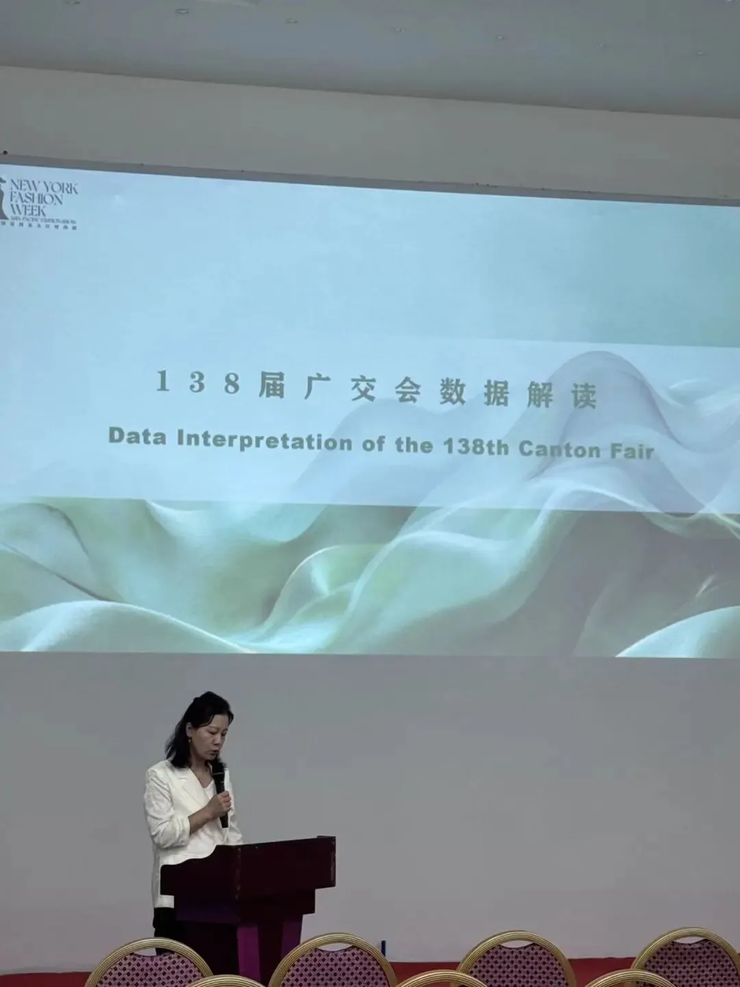 活动现场,广东进出口商会副秘书长沈建平率先带来主题分享,系统解读第138届广交会整体成效,重点披露服装时尚类展品成交数据、海外采购商参会及合作情况,深入剖析当前时尚产业出海核心趋势,并前瞻性展望第139届广交会针对新兴市场的精准对接举措,为参会企业把握广交会机遇、拓展海外市场提供了专业指引。