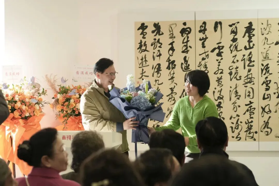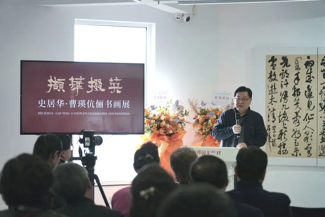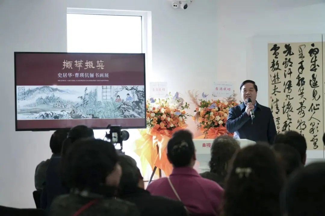 时维仲春,艺苑生辉。史居华、曹瑛伉俪书画合展于南视觉美术馆华彩启幕。艺林翘楚萧平先生亲临致贺,与近百位鸿儒雅士、艺界同道共襄盛举。群贤毕至,少长咸集,满堂翰墨生香,堪称一时之盛。墨韵流芳,丹青焕彩,诚为金陵艺事添一佳话也。