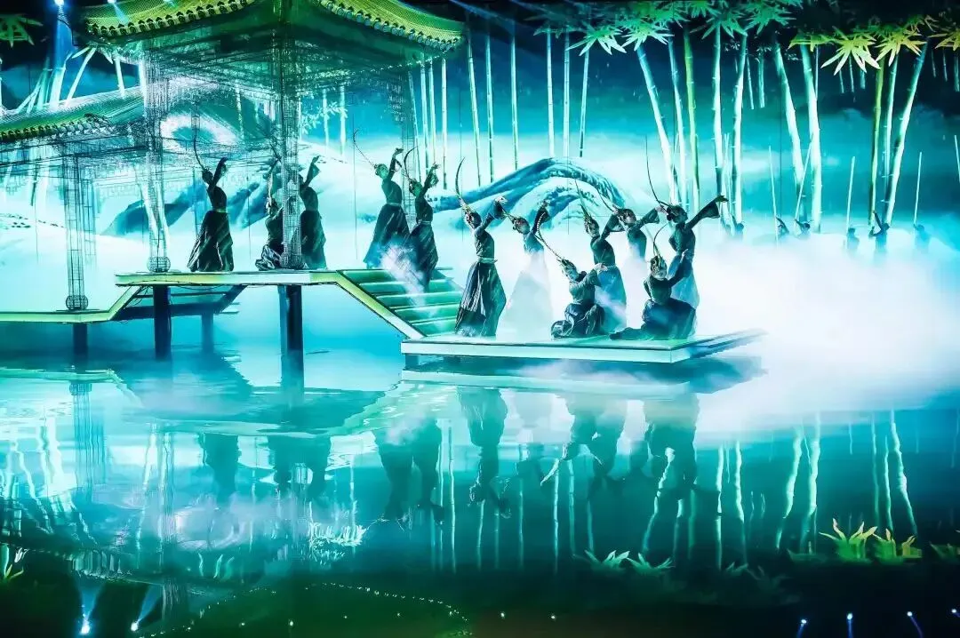 新大宋不夜城《画境》《千里江山》:今年焕新开园后,景区重磅推出的光影实景演出,融合舞蹈艺术与数字科技,将传世名画的山水意境灵动呈现于夜色之中,一步一景、人在画中游,带来沉浸式的宋韵视觉盛宴。