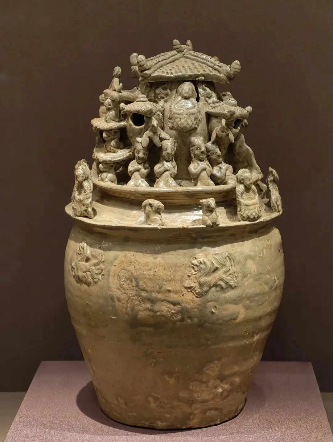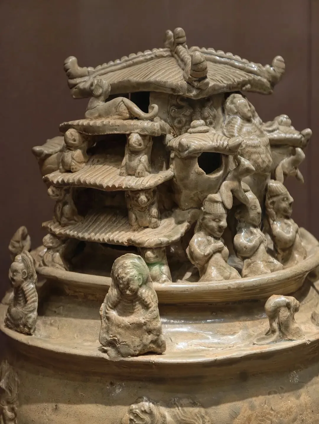 ▼青釉堆塑楼阙人物瓷罐