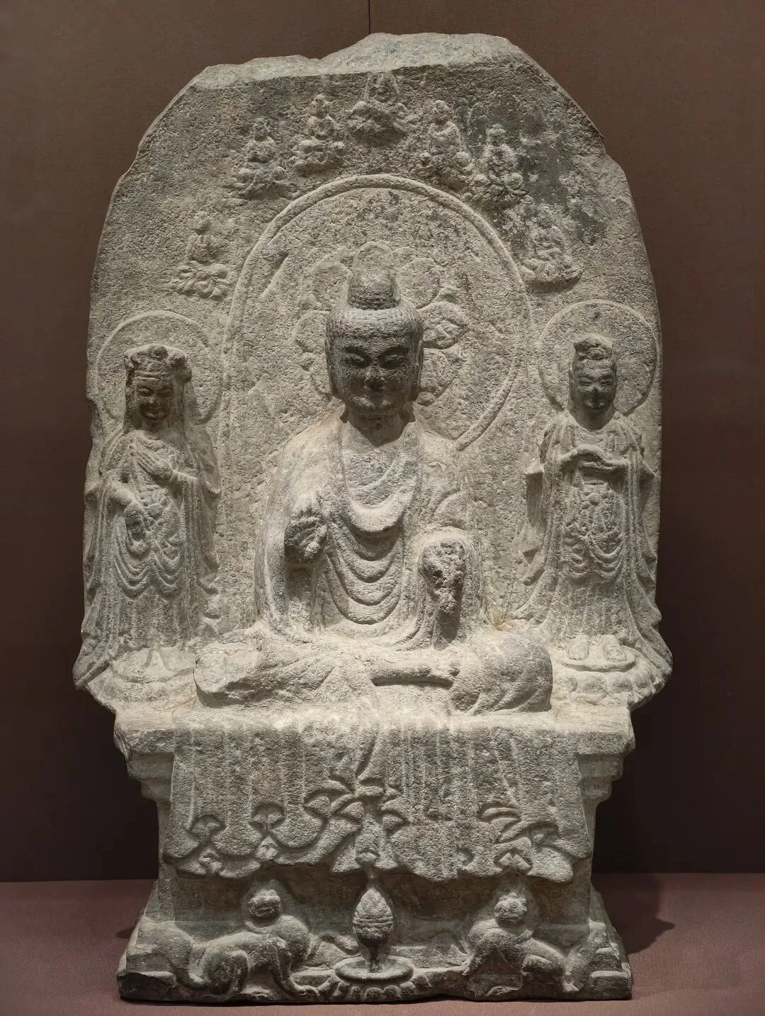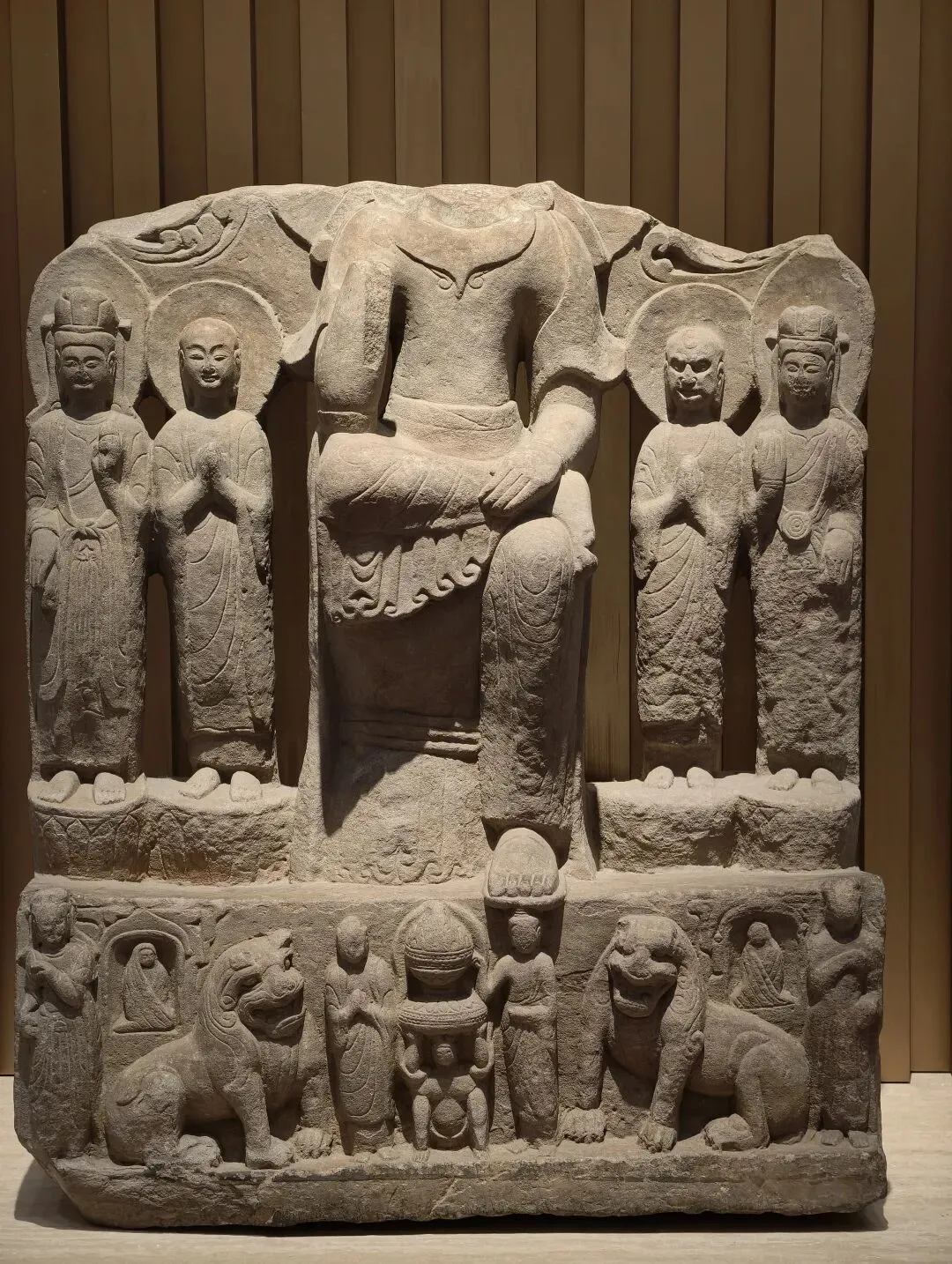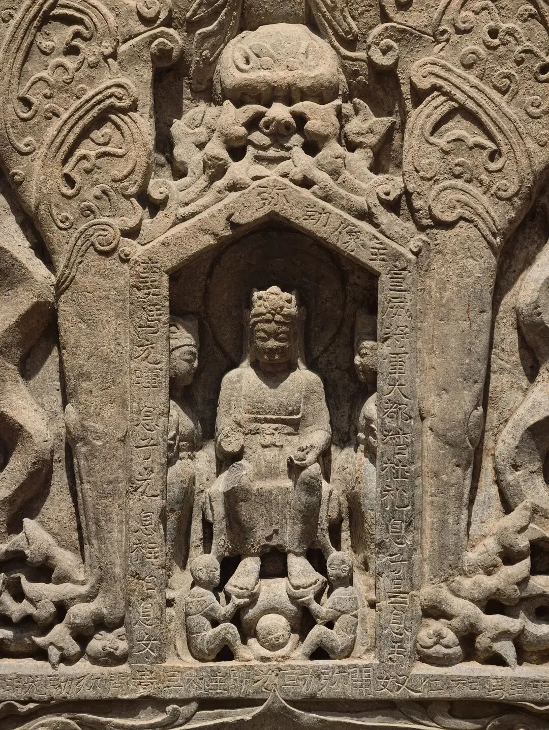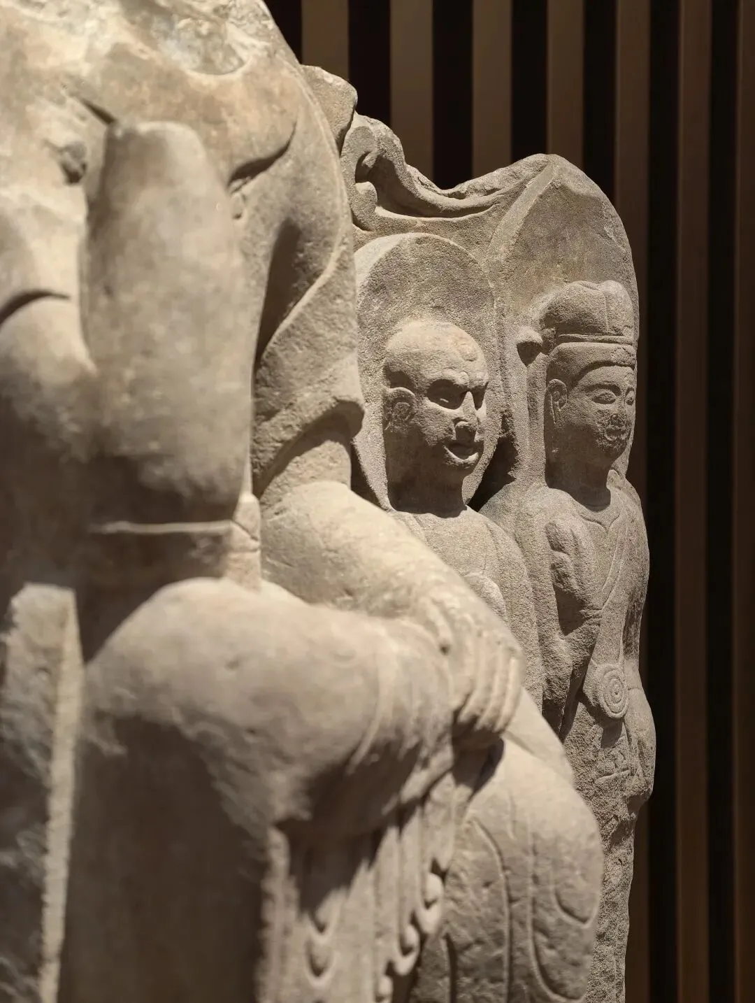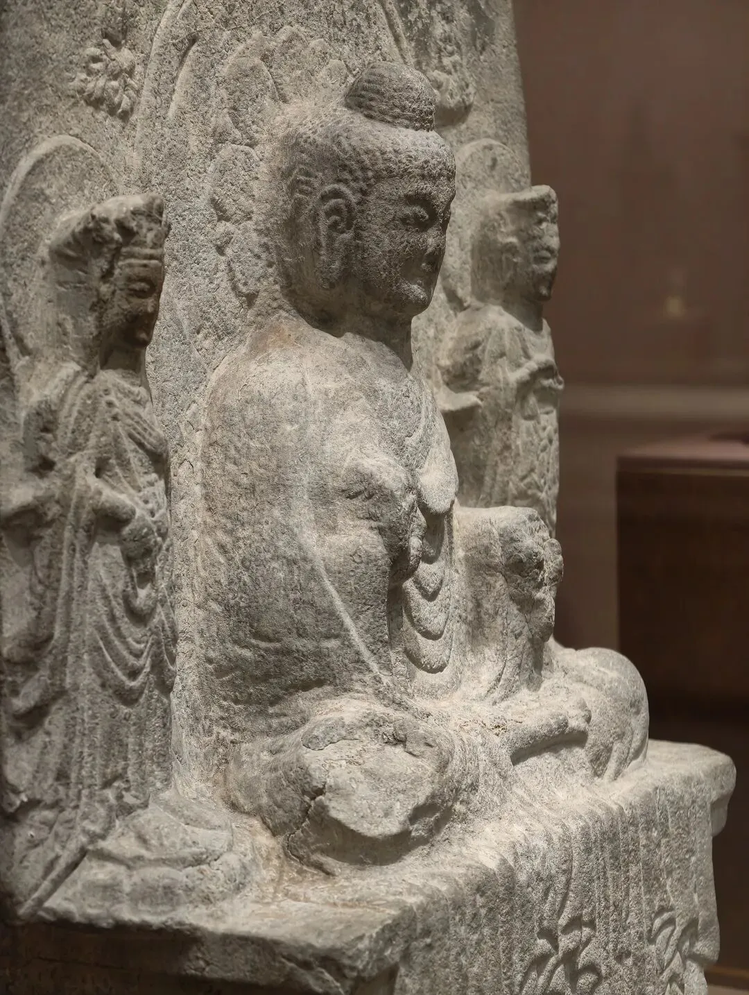 出土石塔节的陇东地区是一处佛教雕塑艺术传播的十字路口。在这件石塔节上,既有身穿 “褒衣博带” 装的佛像,也有衣着贴体的凉州风格的佛像,尤其是菩萨像上身裸露、下身着裙,明显受到西域影响。中国式的佛装源自蜀地南朝齐风格,越过秦岭影响到陇东地区,体现了此地南北方向的交流。石塔节下方有龙、狮子、驴和骆驼等表示祥瑞的动物。这些动物在当时被认为是神兽,多从西域传来。