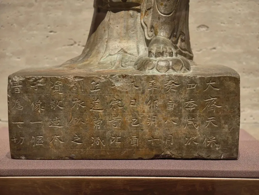 有铭文记载的类似造像多为观音。这尊造像头部较大,上身宽博,下身粗短,接近云冈一期和河西地区北凉的菩萨形体,应是受到犍陀罗、新疆及河西地区早期佛教艺术的影响。