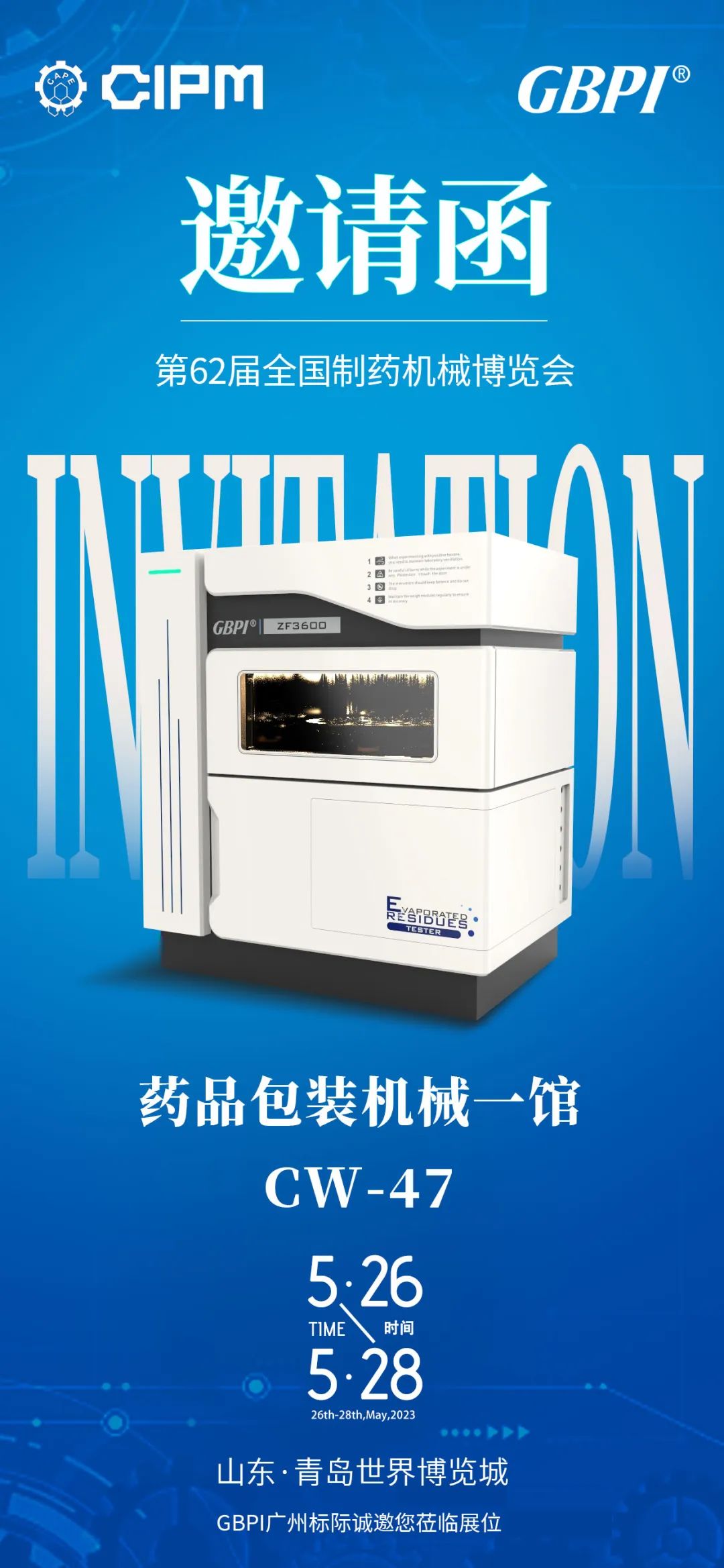 2023年5月26日-28日,GBPI标际将参加药机博览会并带来最新的药包材检测解决方案,包括透湿、透氧、透气、残渣蒸发、制药包装容器密封性、实验室数字化系统等方面的最新技术与解决方案,助力加快打造自动、高效、物联的智慧实验室!