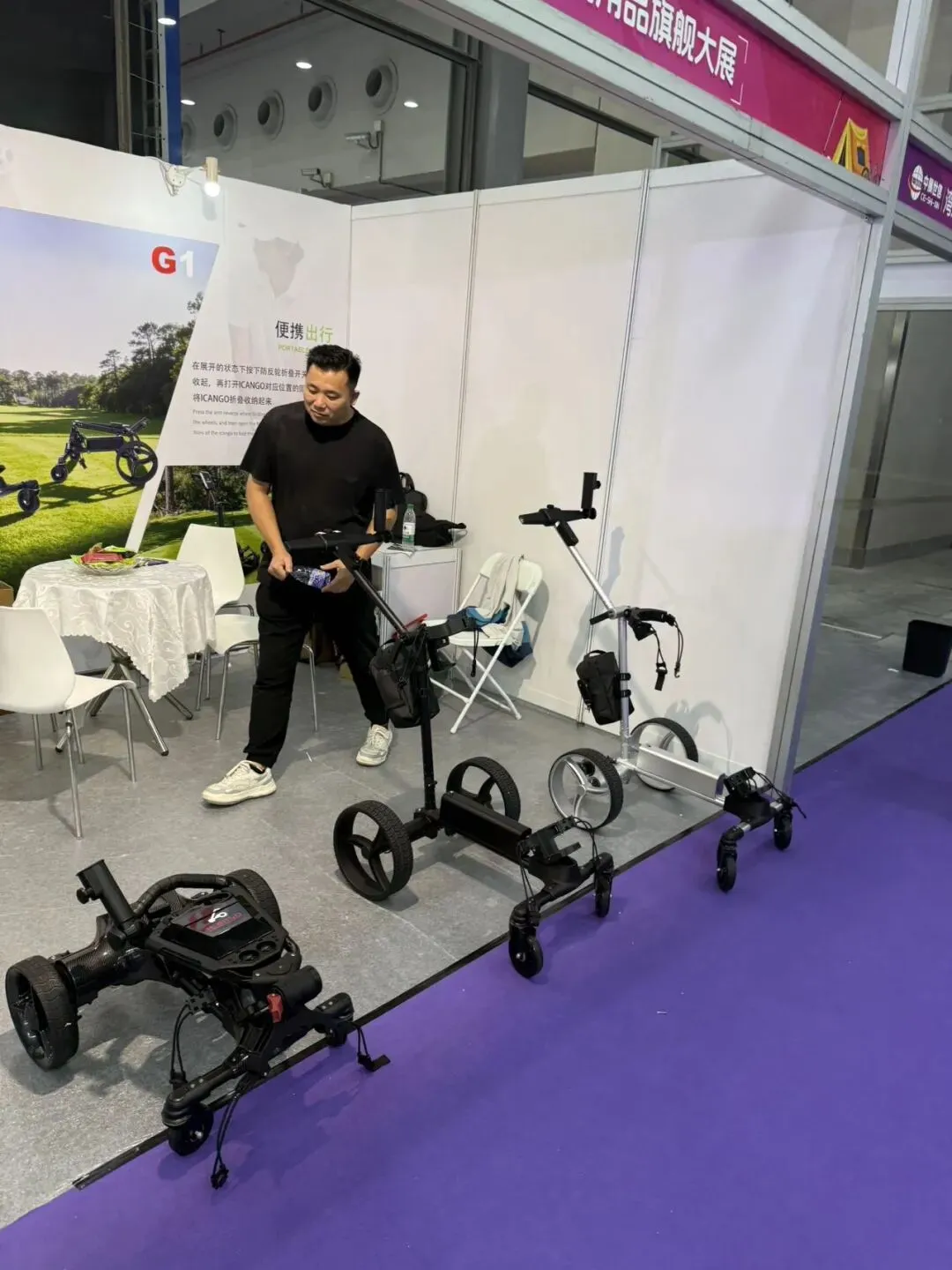 有一些比较亮眼的产品,比如充电款高尔夫包的小推车,电动户外小拉车,飞鸽也出了ebike