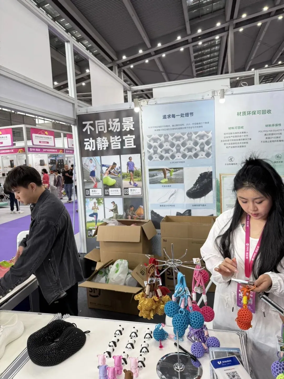 收获还挺多的,一个是,合作的供应商有几个新品在现场看到还不错,让他们给发样品过去公司。一个是,开发到了一个新的供应商,他们的产品做的非常不错,可以用在多个细分场景,正好适合我们在开发的宠物的细分类目。