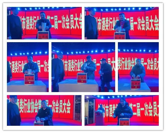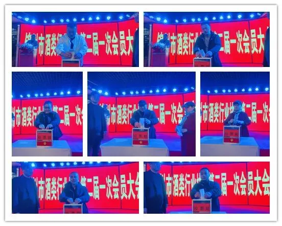 上图为参加锦州市酒类行业协会第二届一次会议会员代表投票。