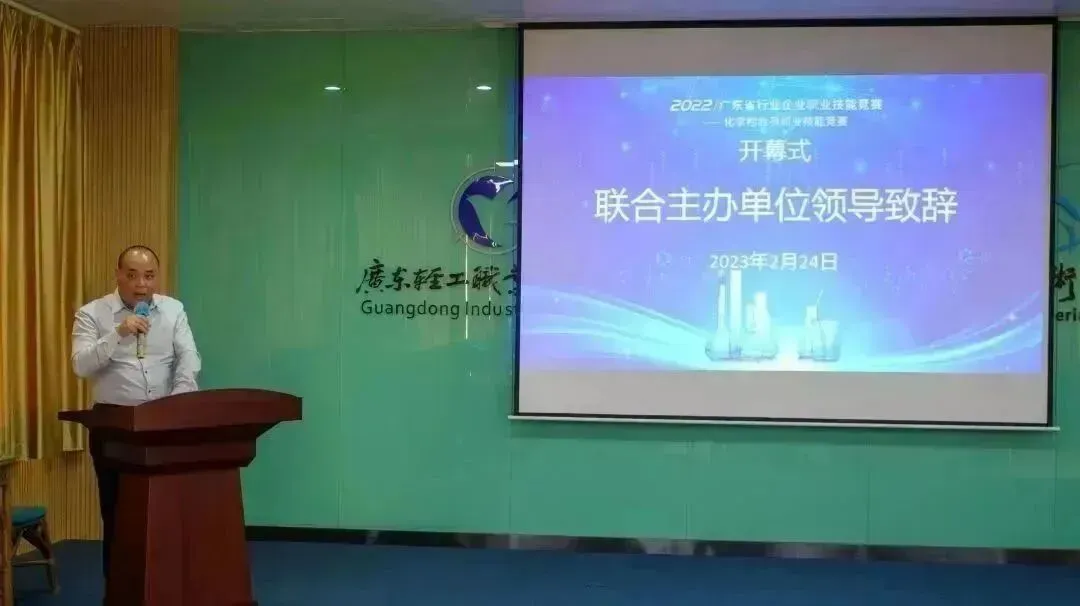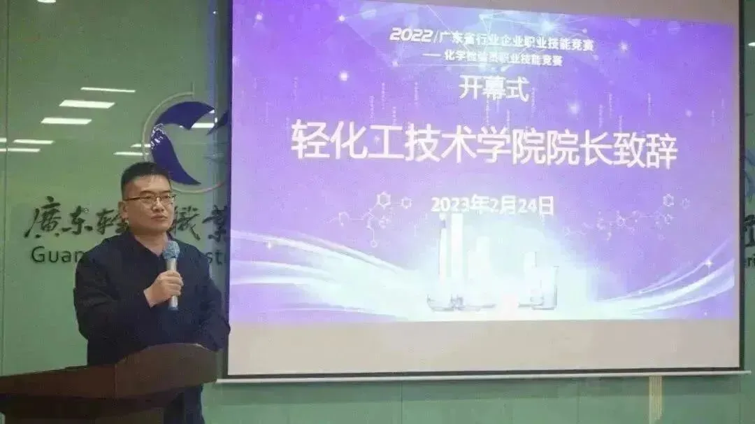 2月24日14:00,本次大赛开幕式在广东轻工职业技术学院南海校区北区第四工业实训楼隆重举行,由广东轻工职业技术学院轻化工技术学院副院长云娜主持。广东轻工职业技术学院副校长邓毛程、广东省轻工业联合会秘书长黄汉成、广东轻工职业技术学院轻化工技术学院主持工作副院长陈金伟,分别在开幕式上致辞。
