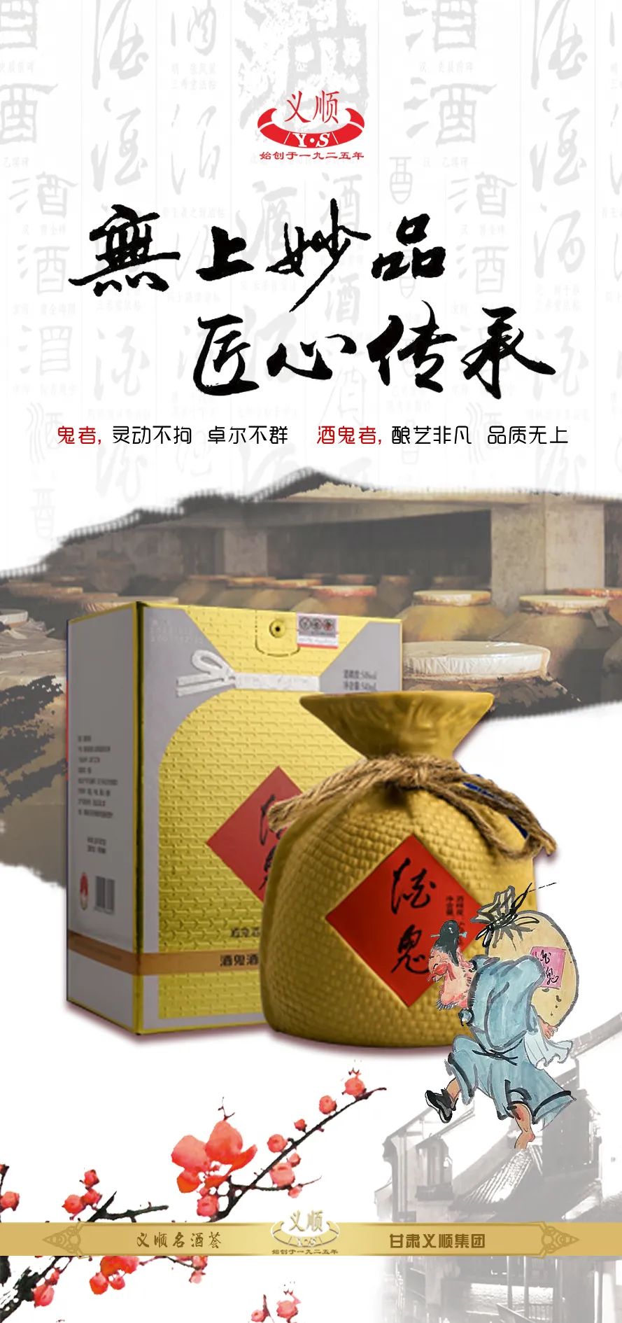 酒鬼是一种品牌追求,唯有鬼斧神工方为无上妙品;酒鬼是一种艺术境界,唯有鬼斧神韵,方显卓尔不群:酒鬼是一种饮酒哲学,唯有鬼灵洒脱,方可醉与非醉;酒鬼是一种才智人生,唯有鬼才智者,方能自由逍遥。