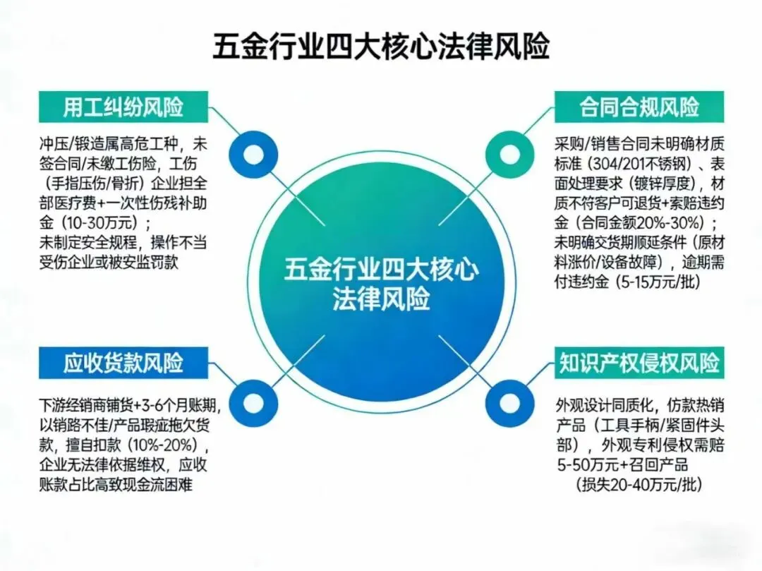 五金行业四大核心法律风险,每一项都可能压缩企业利润空间: