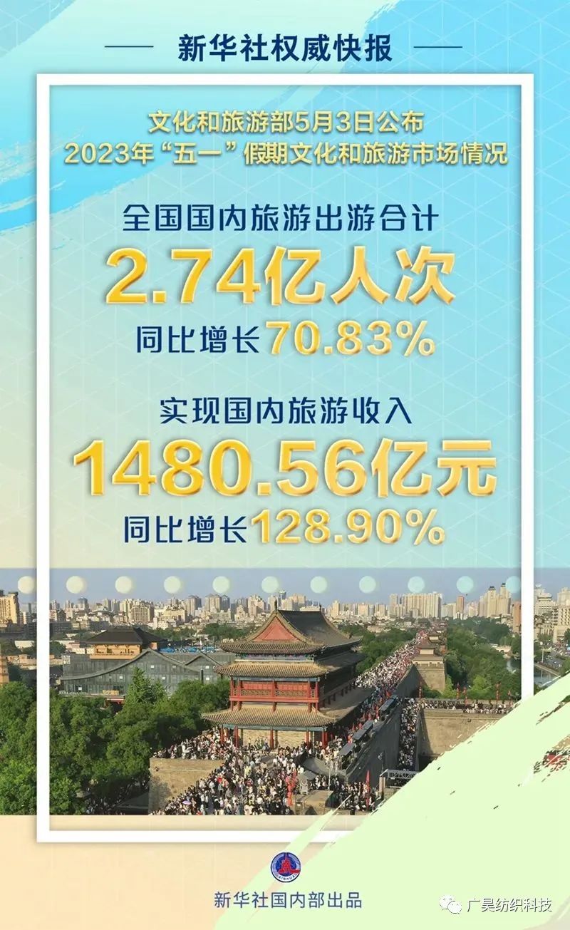 从城市大街小巷到风景秀丽的景区,人山人海,无处不在。5月3日,被誉为近五年最火的“五一”假期圆满收官。据文旅部发布的数据显示,2023年“五一”假期5天,全国国内旅游出游合计2.74亿人次,同比增长70.83%,按可比口径恢复至2019年同期的119.09%;实现国内旅游收入1480.56亿元,同比增长128.90%,按可比口径恢复至2019年同期的100.66%。