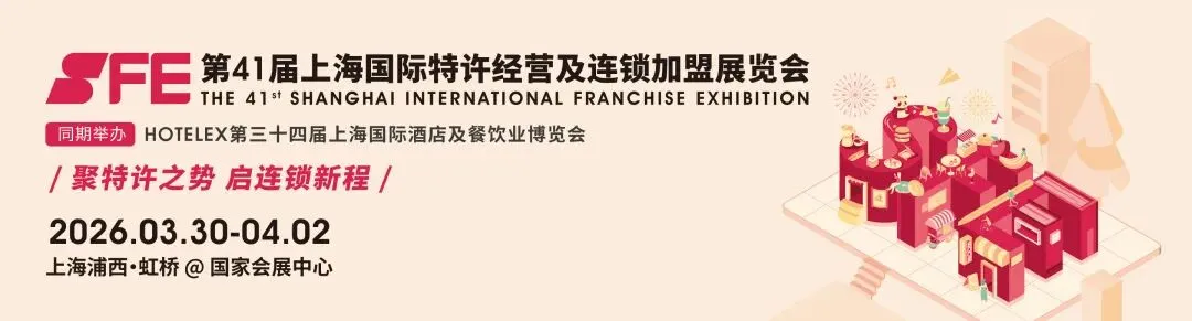 2026SFE上海国际特许经营及连锁加盟展览会将于3月30日-4月2日在国家会展中心(上海)隆重举办!涵盖餐饮、零售、服务和连锁资源四大板块中的120+市场主流细分业态,集店型考察、产品和服务体验、活动交流及商务洽谈为一体,为连锁加盟品牌和专业观众之间提供精准高效的加盟投资配对服务,推动国内连锁行业的健康有序发展。