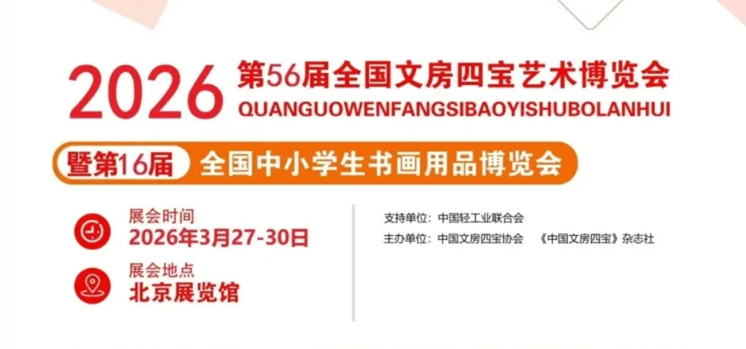 2026年3月27日-30日,第56届全国文房四宝艺术博览会暨第16届全国中小学生书画用品博览会将在北京展览馆盛大开启!