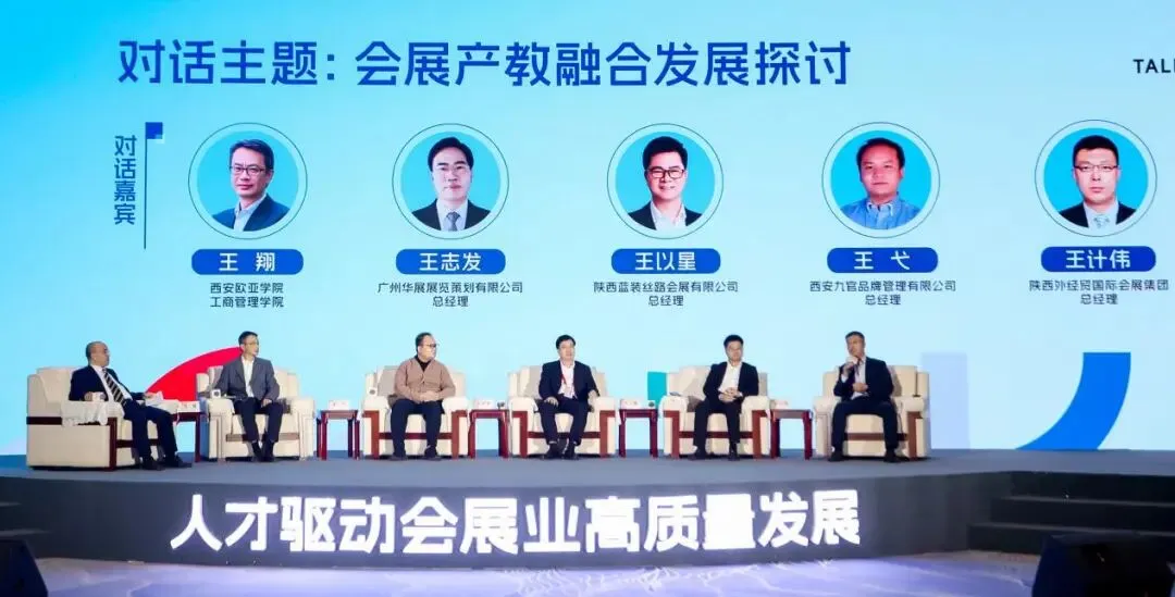 在11月4日下午14时举行的会展高等教育发展分论坛中,会展经济与管理专业王翔老师参与了以“会展产教融合发展探讨”为主题的圆桌对话,同西安外事学院会展经济与管理系主任徐德洪,广州华展展览策划有限公司总经理王志发,陕西蓝装丝路会展有限公司总经理王以星,西安九官品牌管理有限公司王弋总经理,陕西外经贸国际会展集团总经理王计伟一道,共同探讨会展产教融合发展的模式与路径,为人才培养体系建设提供宝贵意见。