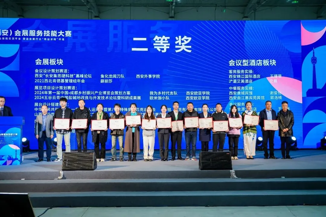 在会展服务技能大赛的舞台上,我们见证了无数优秀的会展人才汇聚一堂,也同样见证西安欧亚学院学子的风采,见证工商管理学院以赛促学践行产教融合理念。经过激烈角逐,西安欧亚学院工商管理学院三支队伍分获展览项目设计策划二等奖和三等奖,同时,西安欧亚学院获得中国(西安)会展服务技能大赛的优秀组织奖。