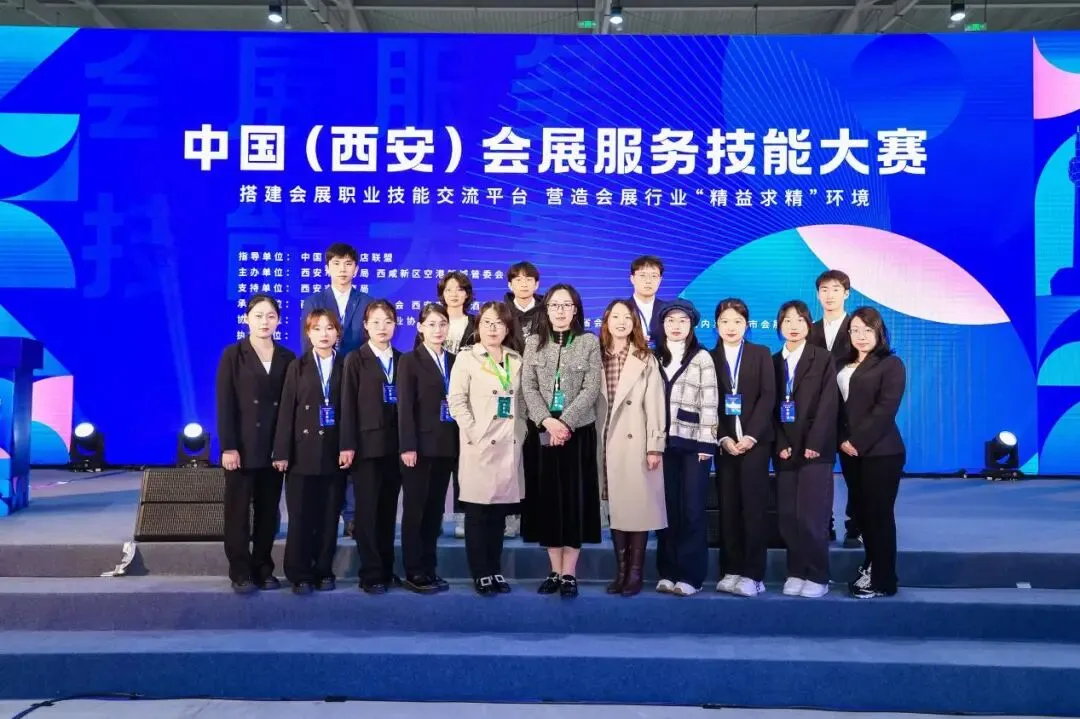 在论坛会场中高校与行业共商人才培养驱动会展高质量发展的同一时间,中国(西安)会展服务技能大赛也在西安临空会展中心如火如荼的开展。本次大赛汇聚众多知名学者、行业优秀团队和员工同台竞技,为会展行业从业人员搭建了创新实践与服务提升的展示交流平台,发挥竞赛的引领带动作用,促进会展业人才素养提升,加强新时代会展人才队伍建设,加快助力西安会展业高质量发展。