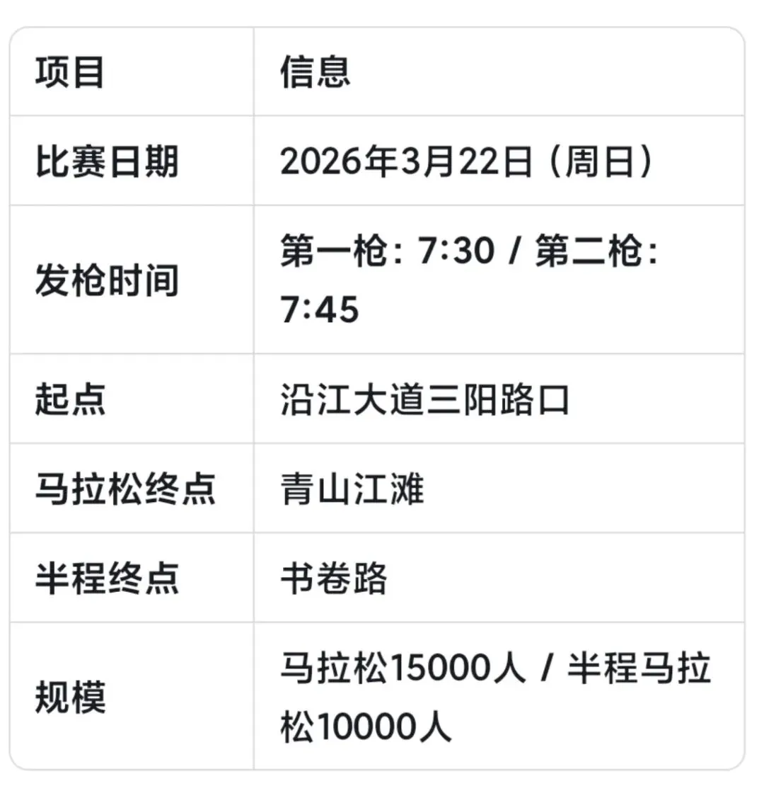 4. 存衣时间:比赛当天起点存衣服务将于第一枪鸣枪前15分钟截止,请做好时间安排。