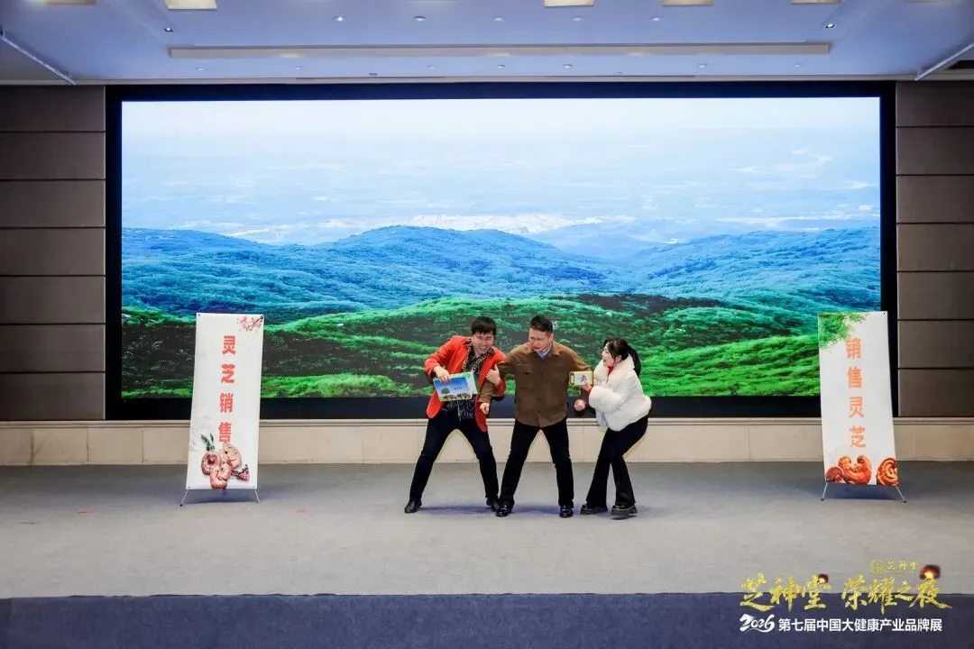 晚宴节目精彩纷呈,芝神堂围绕灵芝文化精心编排的演出赢得满堂喝彩。诙谐幽默的小品《卖灵芝》,以生动鲜活的方式展现了灵芝产品的市场魅力;美轮美奂的《灵芝舞》,则以曼妙舞姿演绎了灵芝的灵动与神韵;一曲悠扬动听的《灵芝缘》,将灵芝的千年传说与人间真情娓娓道来;更有经典舞蹈《只此青绿》惊艳上演。精彩的节目与热烈的交流交织,让整场晚宴高潮迭起、余味悠长。