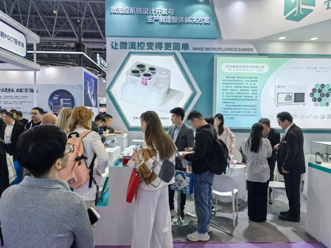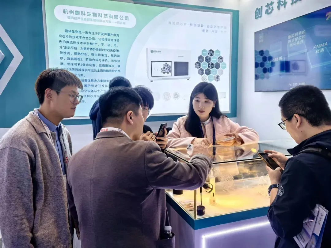 作为国内领先的微流控芯片CDMO服务商,霆科生物在展台集中展示了从芯片设计、模具开发、精密加工到量产交付的一站式服务能力。展位上,来自IVD企业、科研院所及初创团队的客户纷纷驻足咨询,围绕芯片材质选型、结构设计、工艺验证等细节展开深入交流。多位客户表示,霆科生物覆盖“芯片+仪器”的系统级交付能力,为微流控产品的快速落地提供了可靠支撑。
