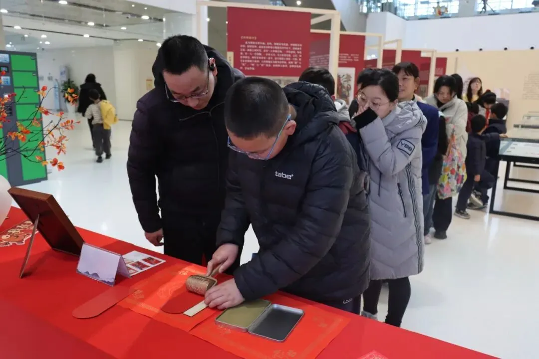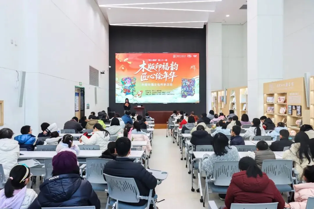 2月8日,“木版印福韵·匠心绘年华”木版年画文化传承活动温情开展,非遗传承人现场授课,从年画历史源流、流派差异到拓印实操技巧,手把手指导读者执版、覆纸、拓印,并带领读者参观展区,共同完成了一场跨越时空的文化对话。