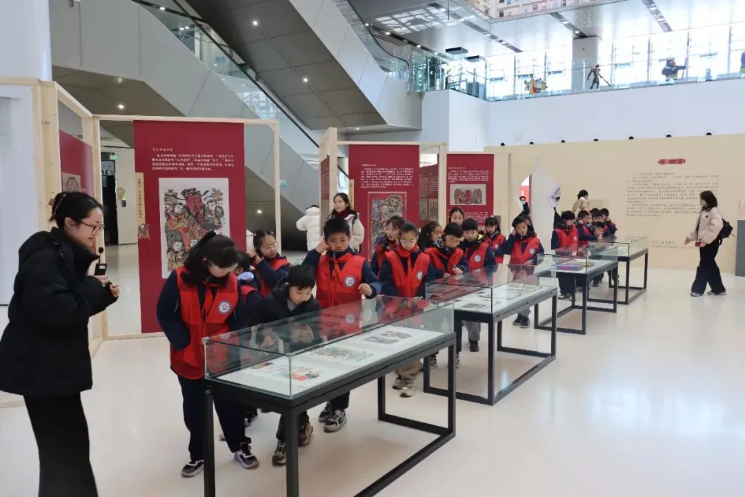 展期内,南京江北新区浦口外国语学校高新小学、天润城幼儿园等师生群体纷至沓来,通过观展和“年画探秘卡片”互动体验,让非遗种子在少儿心中生根发芽。